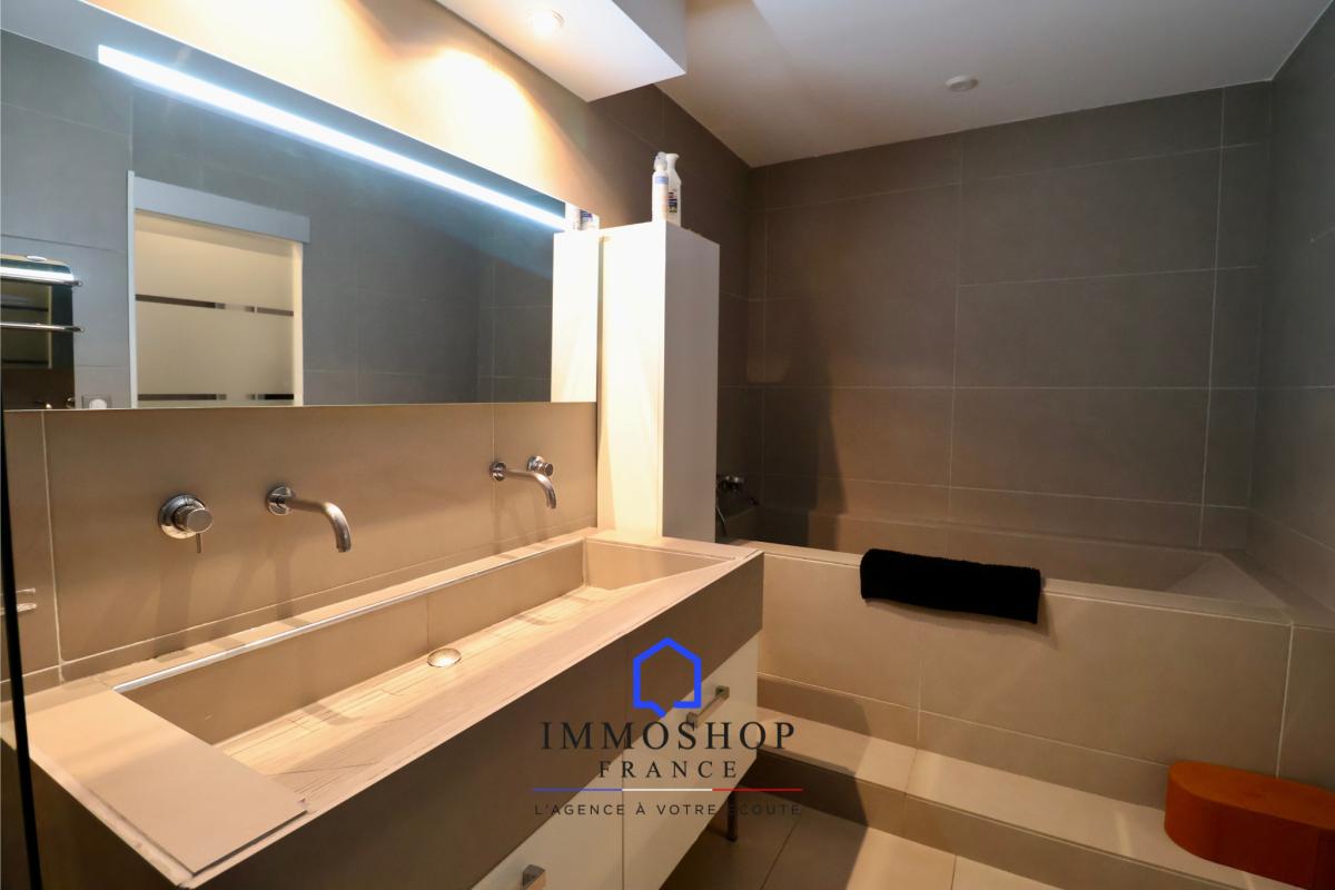 Au niveau inférieur se trouvent : une suite parentale de 22 m2 avec salle d’eau, une chambre de 19 m2, une salle d’eau avec baignoire, douche à l’italienne et double vasque ainsi qu’une troisième chambre et des espaces buanderie/dressing. Les chambres disposent d’une vue dégagée et ce niveau bénéficie également de nombreux placards de rangements intégrés.