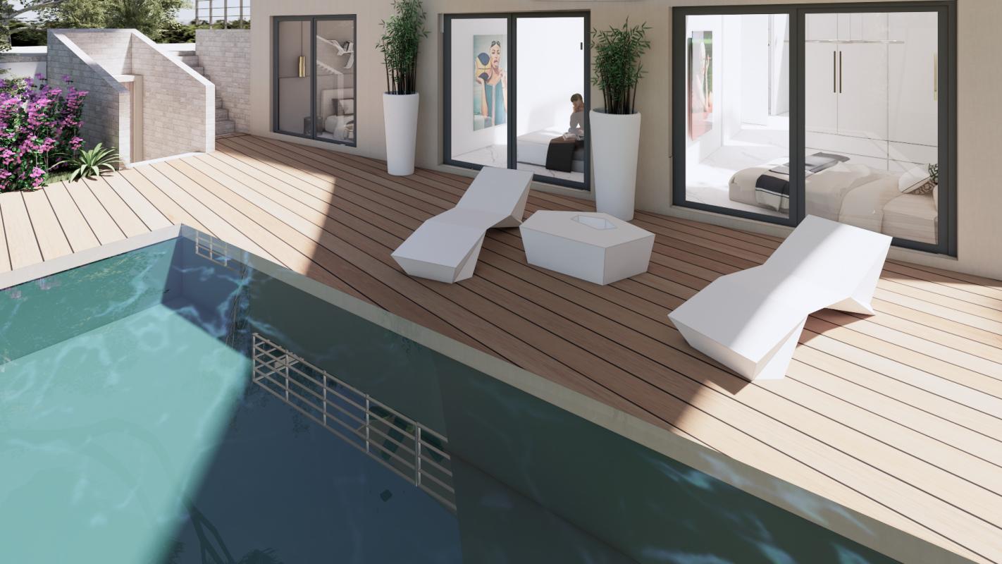 Possibilité de construction d’une villa contemporaine avec garage, piscine et vue mer au premier étage